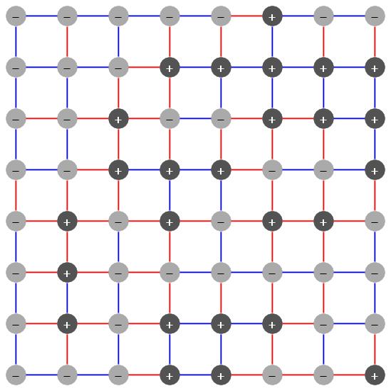 An Ising spin glass is a model for certain magnetic alloys. Imagine a set of N elementary magnets or spins, where each spin can either point up or down. Some spins interact with each other, others don't. The interaction between two spins can either be positive or negative. Spins that interact via a positive bond want to point in the same direction, spins with a negative bond want to point in opposite directions. In general there is no configuration of spins that satisfies all bonds, a phenomenon called frustration. The groundstate of a spin glass is a configuration of spins that minimizes the frustration, i.e. the number of violated bonds.